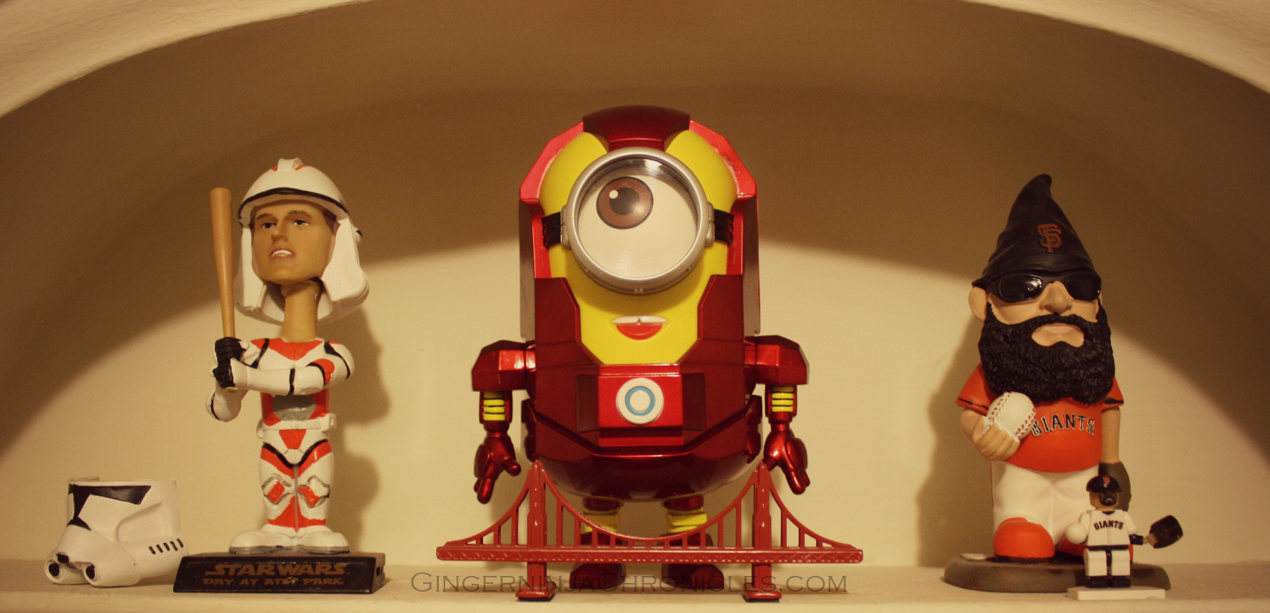Last but not least, here is my Star Wars Buster Posey bobble head, Minion Iron Man and Brian Wilson Gnome.
